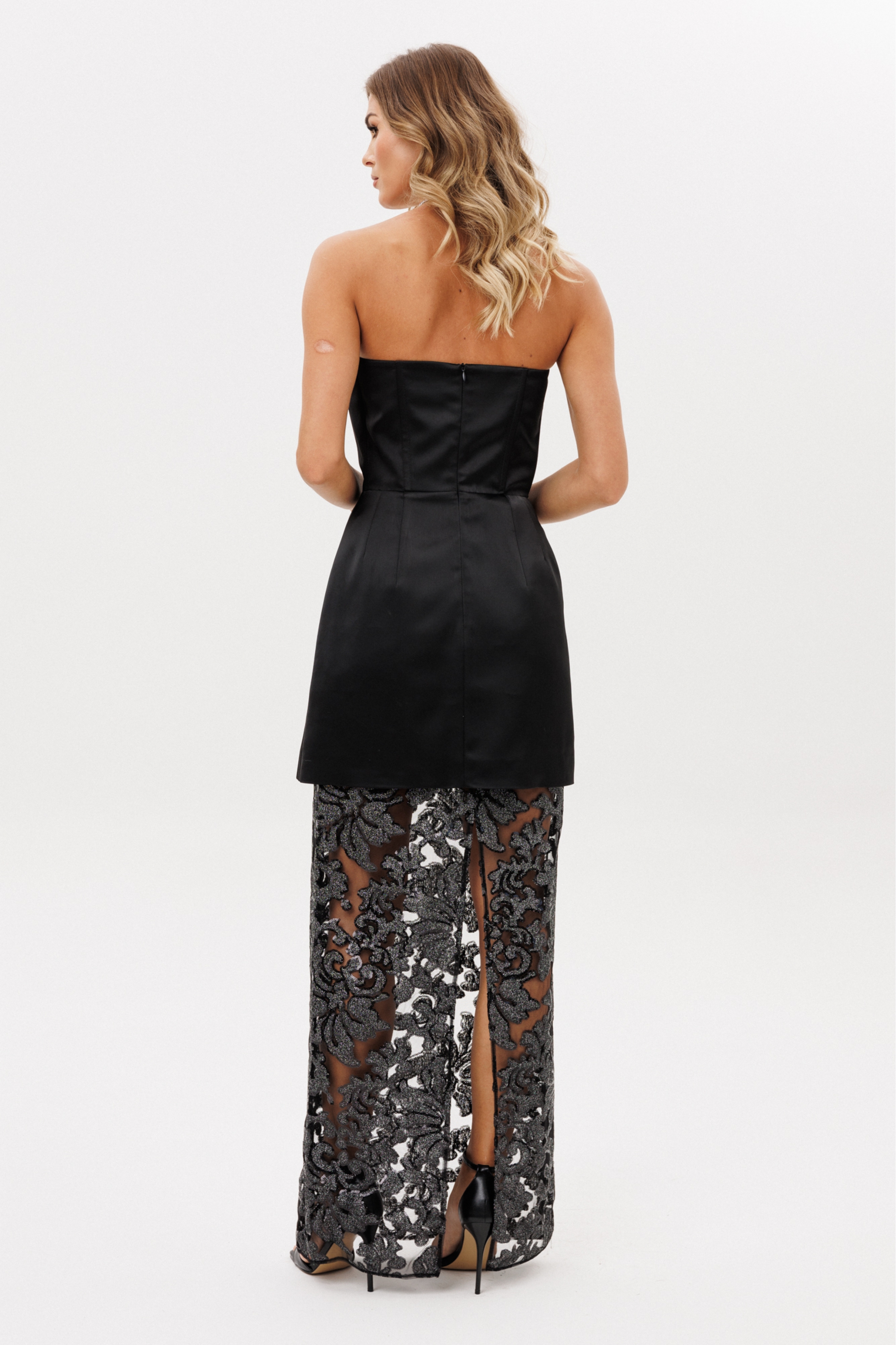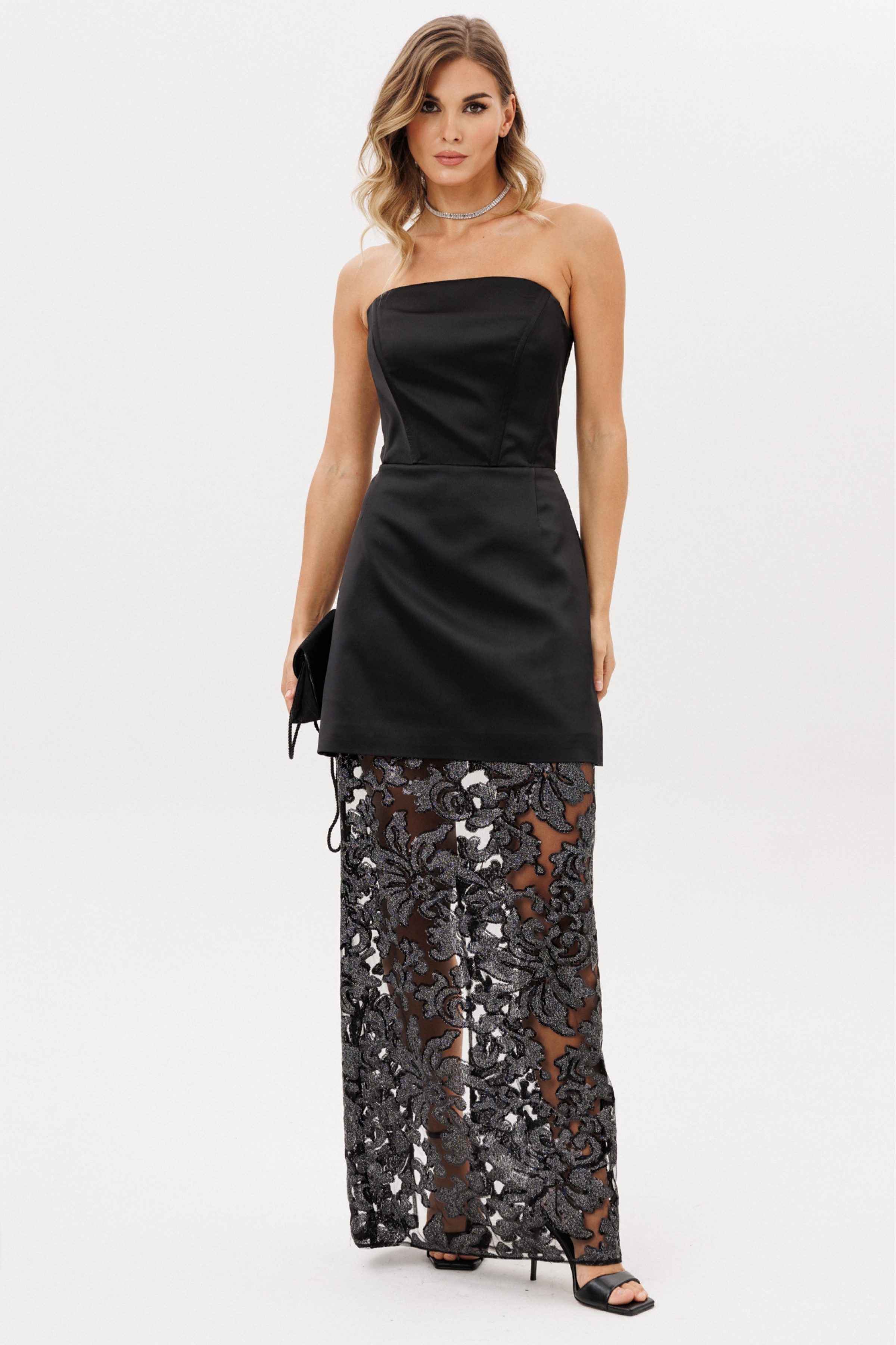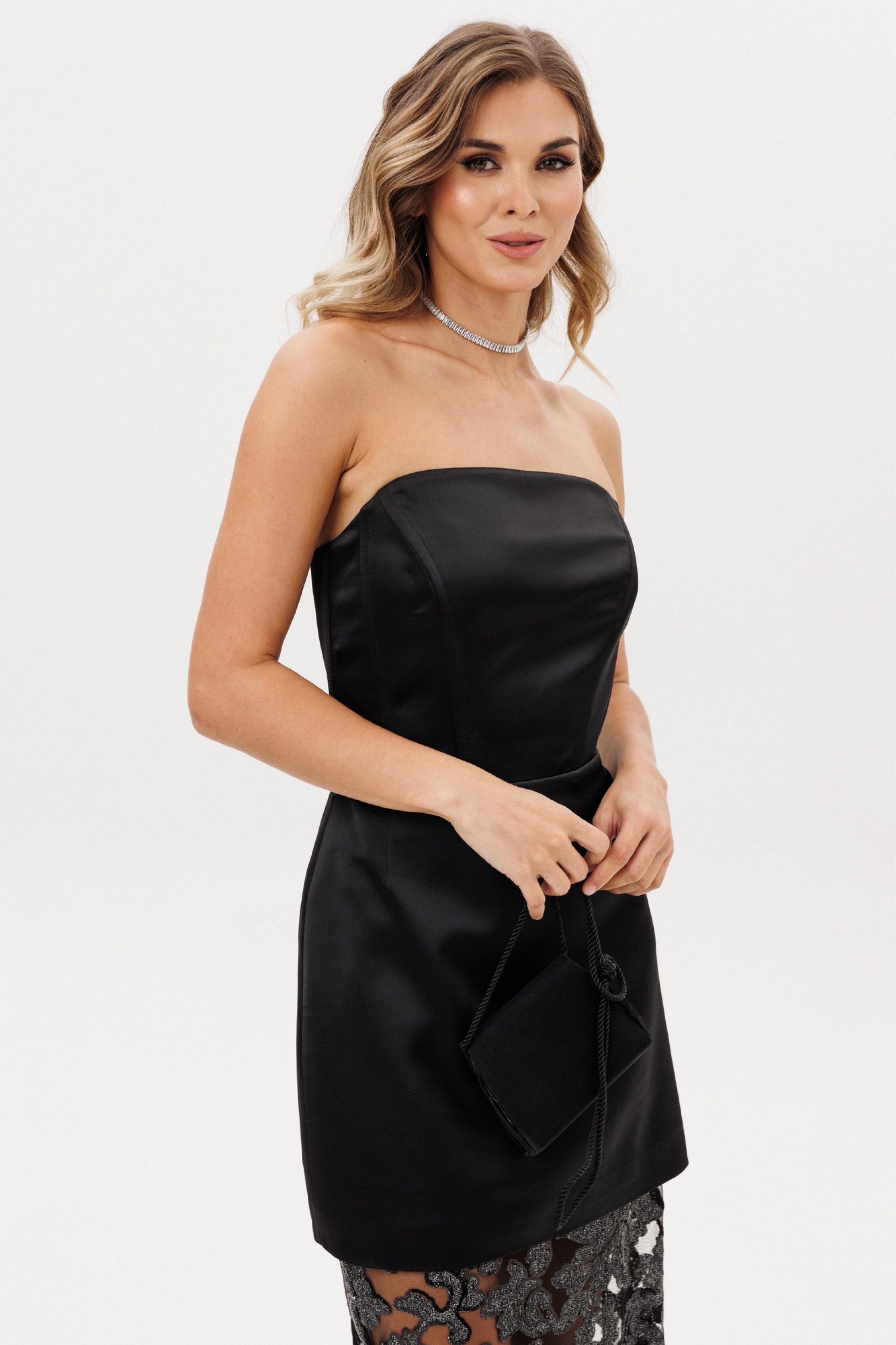 Платье выполнено из плотного атласа. Платье приталенного силуэта, отрезное по линии талии, длиной выше линии колена. Лиф выполнен в виде корсета, в рельефы вставлен регилин. Застежка на потайную молнию сзади в среднем шве спинки и юбки. Юбка прямого силуэта. Платье на притачной по низу подкладке. Нижняя юбка в комплект НЕ ВХОДИТ и продается отдельно м.2996.