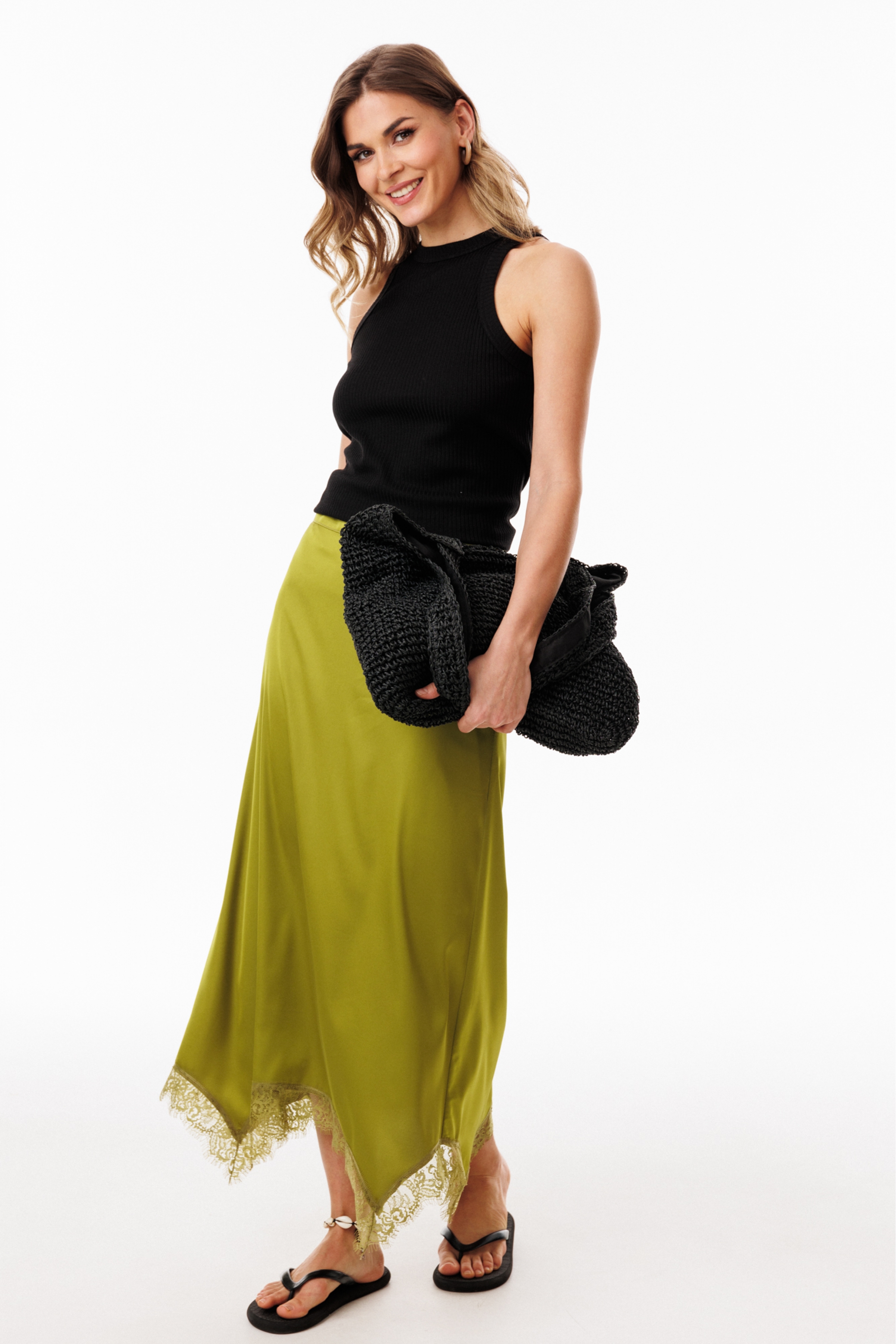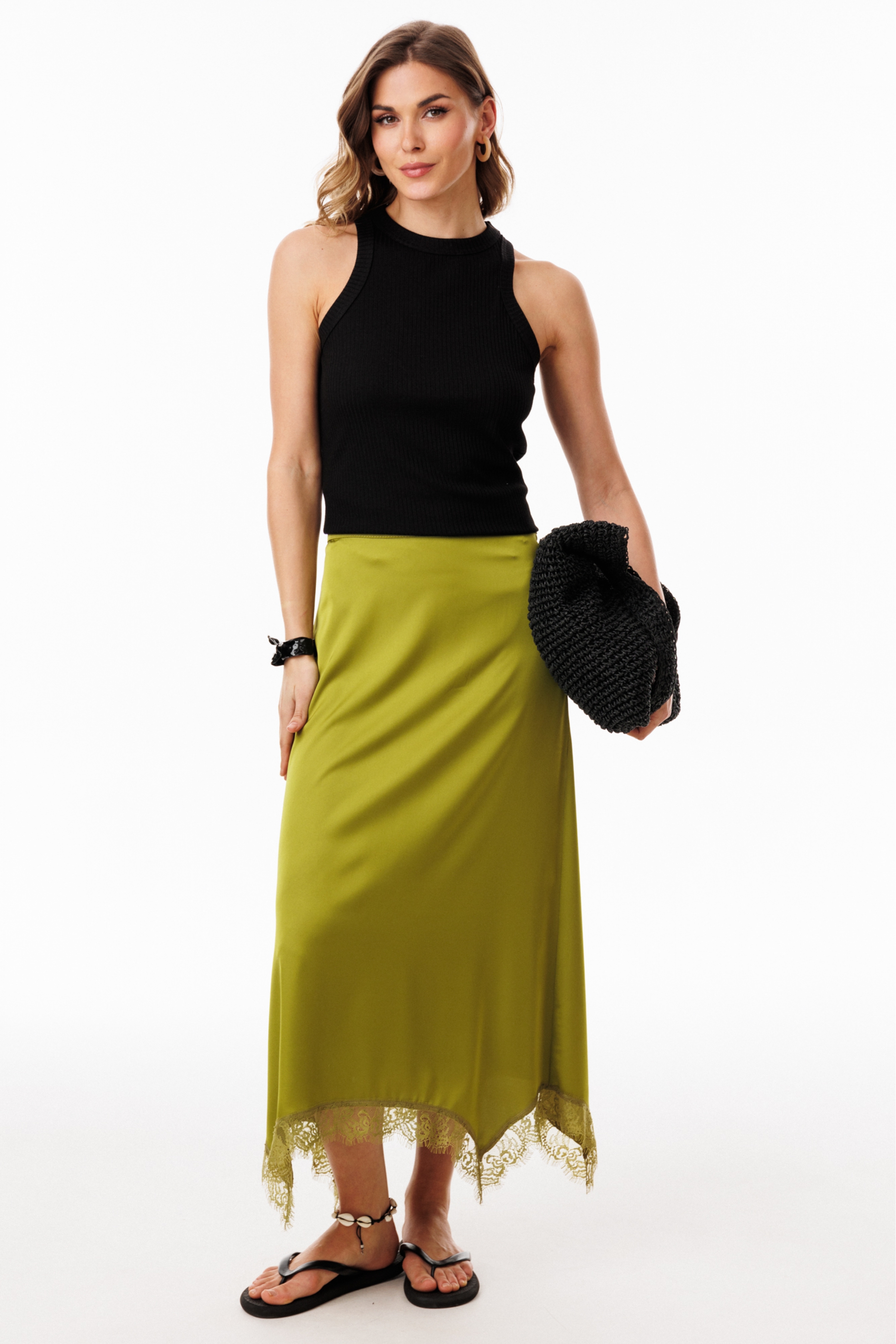 Джемпер выполнен из трикотажного полотна в рубчик. Джемпер приталенного силуэта, длиной выше линии бедер. Перед и спинка цельные. Горловина округлой формы. Плечевой шов заужен. Горловина и пройма обработаны бейками из основной ткани.